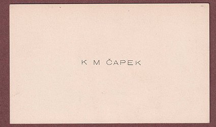 Vizitka K. M. Čapka-Choda. Na rubu sdělení pro Ignáta Herrmanna. Čapek-Chod se ptá, zda by mohl Herrmann vydat jeho knihu "Znovu a lépe" v Čítárně Švandy dudáka. Psáno tužkou, bez údajů.