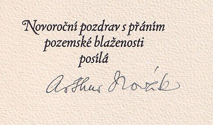 Praha, Arthur Novák, 1926. OBr. se zlacenín, volně vložené archy, 12 s. Přeložil Jarmil Krecar. Novoroční tisk nakladatele. Na patitulu podpis Arthura Nováka. Celkem 100 neprodejných výtisků na ručním papíře van Gelder.