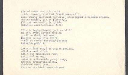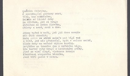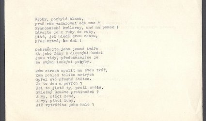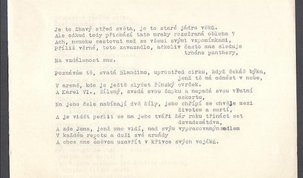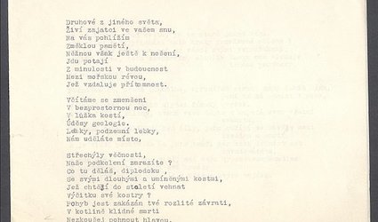 Překlad básně ze sbírky "Gravitations", odd. Géologies. Překlad z roku 1944. Psáno na stroji po sedmi 1/2 stranách pap. A4. Podpis modrým perem.