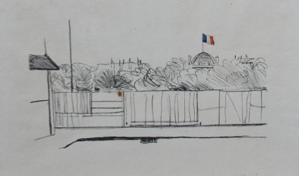 Ručně kolorovaná litografie 17 x 30 cm. Signováno a datováno vpravo dole tužkou. Rok 1947. Autorský tisk. Pouze 20 výtisků. Rám, sklo.