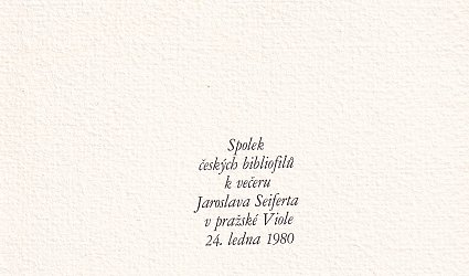 (autogram) Pamětní list Spolku českých bibliofilů k večeru Jaroslava Seiferta v pražské Viole.