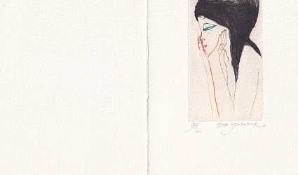 Praha, Spolek českých bibliofilů, 1980. Arch ručního papíru. Na třetí straně barevná suchá jehla 9,8 x 5,8 cm od Oty Janečka. Signováno vpravo dole tužkou. List č. 64/100. Na druhé straně podpis Jaroslava Seiferta.