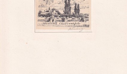 Z knih Havlíčků Chodovských. Pohled na chodovskou vilu se skupinou topolů.