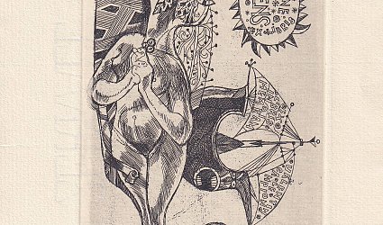 1. Ex Libris Don Francisco se Alós y de Fontcuberta. Dívky a ptáci. Lept 11,9 x 7,8 cm. Signováno a datováno dole uprostřed tužkou. 2. Ex Libris Eugéne Strens. In memoriam Valentin le Campion. Mořská panna s loďkou. Lept 8 x 12,2 cm. Nesignováno, nedatováno. Rok 1962. 3. Ex Libris Ing. O. Hradečný. Morana vítá holubici. Lept 7,7 x 6 cm. Signováno a datováno vpravo dole tužkou. Rok 1952. 4.. Ex Libris Dr. Anna Lerperger. Sedící faun. Lept 5,5 x 6,7 cm. Nesignováno, nedatováno. Rok 1965.