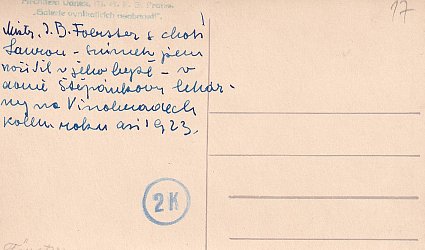 Pohlednice s originální fotografií 13,5 x 8,4 cm. Cyklus Galerie vynikajících osobnostrí. Fotografoval Jindřich Vaněk cca 1923. Na zadní straně razítko s adresou fotografa a jeho vysvětlení modrým perem.