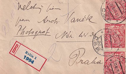 Bez údajů. Dle razítka na obílce odesláno 20. IV. 25 z Kolína. Psáno na dopisním papíře po jedné straně černým perem. Radimského mrzí, že se Vaněk neohlásil a neviděli se v Kolíně. Pošle mu tedy obraz do Prahy, až tam pojede. Vloženo v originální obálce. Známky, razítka, prošlé poštou. Adresát: Velectěný pán pan Arch. Vaněk, Photograf, Národní třída, Praha.