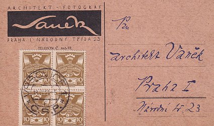 Korespondenční lístek pro Jindřicha Vaňka.
