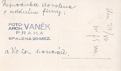 Fotopohlednice s portrétem malíře 13,5 x 8,3 cm. Fotografoval architekt Jindřich Vaněk. Pod portrétem podpis umělce černým perem. Datováno 1935. Na zadní straně poznámky perem a tužkou, razítko arch. Vaňka.