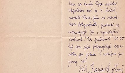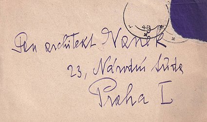 Datováno 30. XI. 27, bez místa odeslání (Praha). Psáno na dopisním papíře po dvou stranách modrým perem. Karásek se omlouvá, že odepisuje pozdě, ale měl problémy s očima. Přijde architekta navštívit do atelieru některé odpoledne, i když si nemyslí, že patří mezi významné osobnosti a navíc se nerad fotí. Vloženo v originální obálce. Adresát: Pan architekt Vaněk, 23, Národní třída, Praha. Razítko, prošlé poštou. Známka ustřižena. Na dopise i obálce razítka Karáskovy galerie.