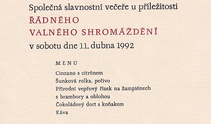 Společná slavnostní večeře u příležitosti řádného valného shromáždění v sobotu dne 11. dubna 1992.