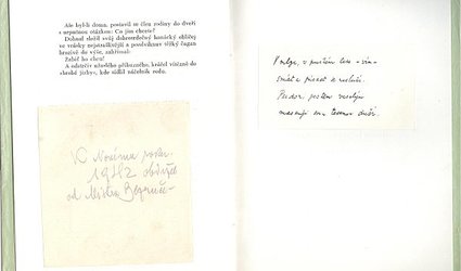 Brno, Pokorný, b. d. OBr., pap. přebal, 28 s. Na titulním listě věnování Petra Bezruče ing. Frant. Šonkovi. Na konci textu nalepen rukopis verše. Vložen lístek potvrzující pravost rukopisu.