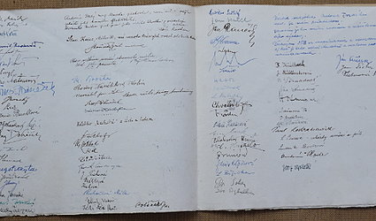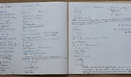 Bez údajů. OBr., nestr. (8 s.). Pět stran podpisů a reakcí návštěvníků výstavy. Podepsáni např. Cyril Bouda, Karel Zink, Jenda Rajman, Dr. Bohumír Lifka, Marie Majerová, L.N. Zvěřina, Arno Sáňka, Josef Vyskočil aj. Vložen leták k výstavě. Vše na ručním papíře z Velkých Losin.