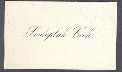 Vizitka s natištěným jménem. Psáno po jedné straně černým perem, nedatováno. Svatopluk Čech posílá Humoresky v krásné vazbě, 3. svazek Povídek a Několik povídek. Jiné knihy doma nemá. Proto přikládá ještě jedny Humoresky, nevázané. V pátek pošle báseň a fotografie.