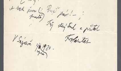 1. Rukopis "Jubilejní lístek". Datováno V Sázavě I./srpna 1924. Psáno na listech dopisního papíru po třech stranách černým perem. Text k 70. narozeninám Ignáta Herrmanna. 2. Dopis Karlu Horkému, v té době redaktoru Švandy dudáka. Herites posílá Jubilejní list, je těžce nemocen a jiný nemá. Vlevo poznámka Karla Horkého tužkou: Rukopis přišel pozdě, časopis byl už zlomen. Poděkoval tedy Heritesovi a sdělil mu, že rukopis předá Herrmannovi. Na dopise datum Herrmannovou rukou: 13/8 24. Psáno červenou pastelkou, datum přijetí dopisu spisovatelem.