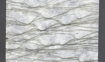 Kresba pastelkami na hedvábném papíře. 13,6 x 10,6 cm. Signováno tužkou uprostřed. Vloženo v archu papíru. Na druhé straně napsán černým perem název s podpisem.