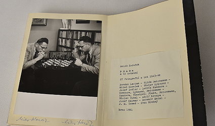 Brno, n. vl., 1981. Plpl. vazba, pap. přebal, volně vložené archy, nestr. (27 s.). Soubor 27 fotografií z let 1943 - 1948. Na fotografiích Bohdan Lacina, Vilém Reichmann, Miloš Koreček, Václav Zykmund, Josef Istler, Ludvík Kundera, Václav Tikal, Josef Kainar, Bohumír Matal, J.M. Tomeš, Adolf Kroupa, Ivan Blatný a Vlastimil Fiala. Některé fotografie signovány, např. Miloš Koreček 4x, Vilém Reichmann 2x, Válav Zykmund 3x, Josef Istler 1x, Ludvík Kundera 3x, Bohumír Matal 3x, Adolf Kroupa 2x a J.M. Tomeš 2x. Na obálce fokalk Miloše Korečka. Na titulním listě věnování autora. Neudaný počet výtisků.