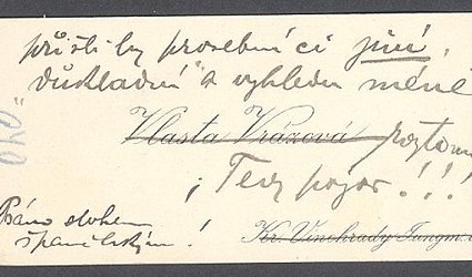 Bez údajů. Psáno na vizitce manželky Vlasty Vrázové po dvou stranách černým perem. Jméno a adresa ženy přeškrtnuty. Vráz prosí Herrmanna o článek pro Američany, psáno humornou formou. Na vizitce Herrmannova poznámka modrou pastelkou, zřejmě archivní číslo, 940.