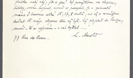 Bez údajů. Psáno na dvou listech papíru, vždy po jedné straně černým perem. Herrmann cituje a objasňuje dopis Luďka Marolda z 2/4 1895, který mu zaslal z Paříže. Listy jsou číslovány modrou pastelkou.