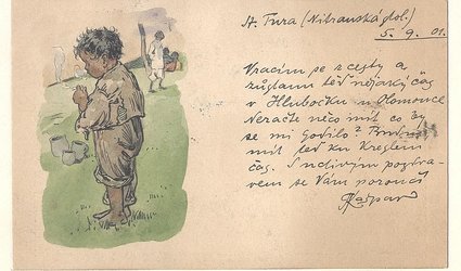 Dopis pro Ignáta Herrmanna. Datováno St. Tura (Nitranská stol.) 5.9. 01. Kašpar informuje Herrmanna, že se vrací z cest. Bude nějakou dobu v Hlubočku u Olomouce, kde bude mít spoustu času na kreslení. Ptá se tedy, jestli pro něj Herrmann nemá zakázku. Psáno na dopisním papíře po jedné straně černým perem. Vlevo barevný akvarel 7,7 x 4,9 cm. Dobová pasparta.