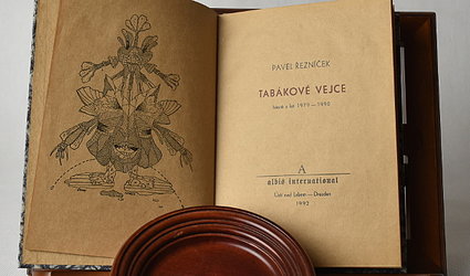Ústí nad Laben - Dresden, Kristina Kaiserová, 1991. Albis international. OBr., katon, 42 (3) s. Ilustrace Karol Baron. Celkem 199 výtisků, z toho číslo 1 - 5 na Zerkallském papíře, 6 - 10 na papíře z Velkých Losin, čísla 11 - 76 na papíře Ingres a čísla 77 - 199 na balícím papíře tabákové barvy. Tento výtisk na papíře tabákovém. Na patitulu podpis Pavla Řezníčka a Karola Barona červeným perem.