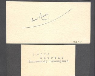 Podpis černým perem na kartě 6 x 12,3 cm. Datováno 25.X. 1938. Montováno na karton. Pod kartou nalepena kartička se jménem spisovatele.