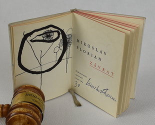 Praha, Československý spisovatel, 1964. Clpl. vazba s kresbou, 75 (6) s. Doslov Bohumil Svozil. Ilustrace, vazba a předsádka Ivo Urbánek. Na titulním listě podpis Miroslava Floriana s poznámkou 30.