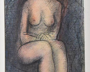 Kresba tuší kolorovaná akvarelem 52,8 x 27,5 cm. Signováno vpravo dole, nedatováno. Pasparta.