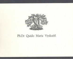 Navštívenka spisovatele pouze se jménem. Datováno 28.X. 43., bez místa odeslání. Psáno po jedné straně modrým perem. Vyskočil žádá neznámou adresátku, aby mezi své přítelkyně přijala jeho známou.