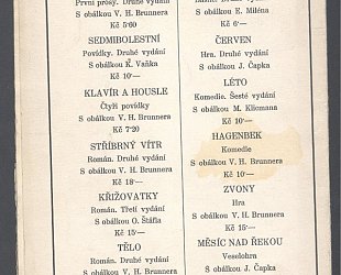 Praha, B.M. Klika, Zátiší, Knihy srdce i ducha, 1923. Opona svazek IX. OBr., 81 (2) s. Návrhy scén Bedřicha Feuersteina. Obálka, originální linoryt, Josef Čapek.