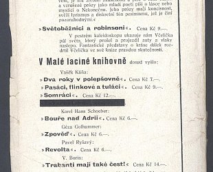 Praha, Karel Borecký, 1932. OBr., 146 (3) s. Obálka Géza Včelička.