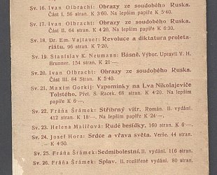 Praha, Fr. Borový, 1922. Edice Červen svazek XXVII. OBr., 61 (2) s. Obálka a frontispis Václav Špála.