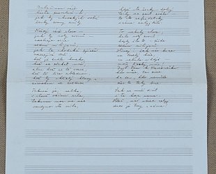 Originální partitura, psáno černým perem. Jeden list notového záznamu, na druhé straně text písně. Datováno 28./XII. 1939, Praha - Vršovice. Zhudebnění textu od J.V. Šmejkala.