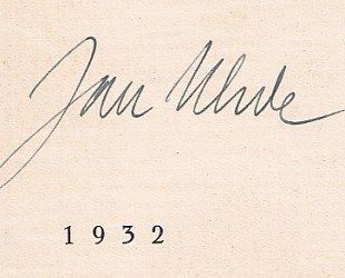 Brno, Literární Středisko, 1932. OBr., 57 (3) s. Obálka a frontispis František Bílkovský. Celkem 300 výtisků na rýhovaném antiku. Prvních 50 číslováno a podepsáno autory. Tento výtisk nečíslován. Podpis Jana Uhdeho na titulním listě.