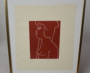 Linoryt 13 x 9,7 cm. Signováno vpravo dole tužkou, nedatováno. Rok 1988. List č. 83/200. Tisk na ručním papíře. Rám, sklo.