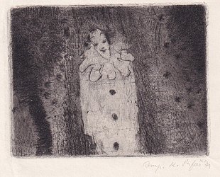 Suchá jehla 6,8 x 9 cm. Signováno a datováno vpravo dole tužkou K. Šafář 79. Tisk na ručním papíře.