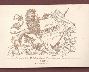 Kabinetní fotografie 10,5 x 6,5 cm. Fotografoval Rupert Pokorny, Mariahilfestrasse 55, Wien