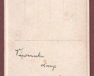 Kabinetní fotografie v podobě pohlednice. 14 x 8,7 cm. Na zadní straně věnování fotografované ženy. Datováno 20/II. 24, Psáno černým perem.