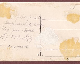 Sbírka Dr. Jaromíra Uhlíře, redaktora Národních Listů. Na rubu stopy po nalepení.