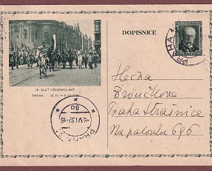 Dopisnice s fotografií z IX. Všesokolského sletu v Praze.