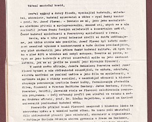 Text smutečního projevu místopředsedy společnosti J. B. Foerstra Jana Hanuše na pohřbu PhDr. Josefa Plavce, Dr.Sc. v Heřmanově Městci. Přiložena reprodukce parte. Hudební skladatel, dirigent, profesor Karlovy university, předseda společnosti J. B. Foerstra atd., PhDr. Josefa Plavce, Dr.Sc., zemřel 29. června 1979. Rozloučení se konalo ve středu 4. července 1979 v Heřmanově Městci.