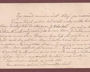 Smuteční karta s tištěným textem 7,8 x 12,7 cm. Na rubu text psaný černým perem, bez datace a místa (Brno). Autorkou je současná partnerka skladatele, slečna Svobodová.