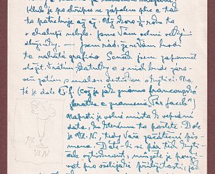 Lept 6,8 x 5,3 cm. Signováno tužkou uprostřed a vpravo dole v desce. Nedatováno. Rok 1948. Na zadní straně dopis pro dr. Vladimíra Nopa. Bez údajů. Psáno pi jedné straně modrým perem. Vlevo dole skica Pf tužkou. Vodrážka děkuje za zaslanou mast pro syna, který má zápal plic. Dále popisuje návrh Pf pro Vladimíra Nopa. Variantu bez Pf by mohl lékař použít i na jiné příležitosti, např. gratulace. Pokud bude Nop souhlasit, vytiskne pár lístků. Destičku pošle v příštím dopise.