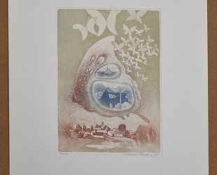 Barevný lept 30 x 21,5 cm. Signováno a datováno vpravo dole tužkou Zdenek Fuksa 85. List č. 47/90. Pasparta.
