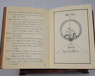 Ručně psaná a kreslená Pamětní kniha od roku 1938. Plkož. vazba se zlacením, 328 popsaných stran. Barevné a černobílé kresby v textu, např. portréty Jindřicha Fügnera, Dr. Miroslava Tyrše, T. G. Masaryka aj., kreslené iniciály, ilustrace z různých událostí apod.