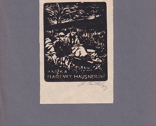 Dřevoryt 8,6 x 7 cm. Signováno a datováno vpravo dole tužkou. Rok 1919. Montováno na karton.