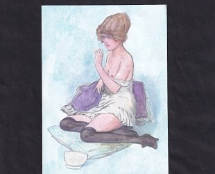Barevný akvarel 15,6 x 11,5 cm. Nedatováno, nesignováno. Montováno na karton.