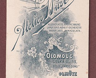 Kabinetní fotografie 10,9 x 6,8 cm. Fotografoval Atelier Wüst Olomouc, Česká ulice 15.